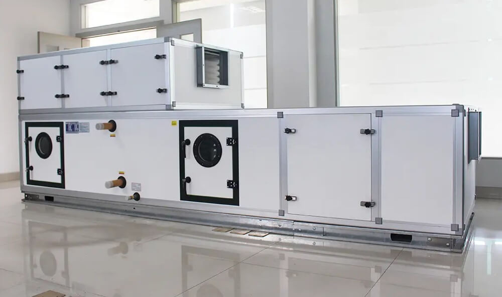 4.空氣處理機組內(nèi)表面應(yīng)平整、清潔,不得有油污、雜物、灰塵。檢查門門框應(yīng)平整,密封墊宜采用成型密封膠帶或軟橡膠條制作。做好設(shè)備開箱前的檢查工作,特別是多套組合式空調(diào)器的工程,必須認(rèn)真核對廠家發(fā)貨清單或明細(xì)表,將各系統(tǒng)的設(shè)備分開并運至各個空調(diào)機房,尤其是應(yīng)防止同型號設(shè)備泥涌以免造成安裝錯誤。