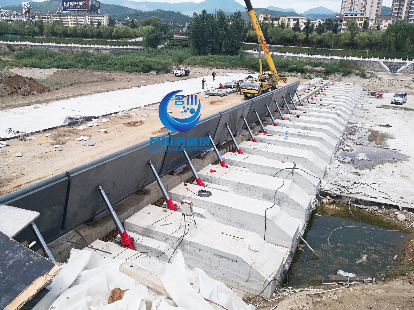 陜西130*2.8米 液壓壩施工現場,用工匠精神 打造精品工程